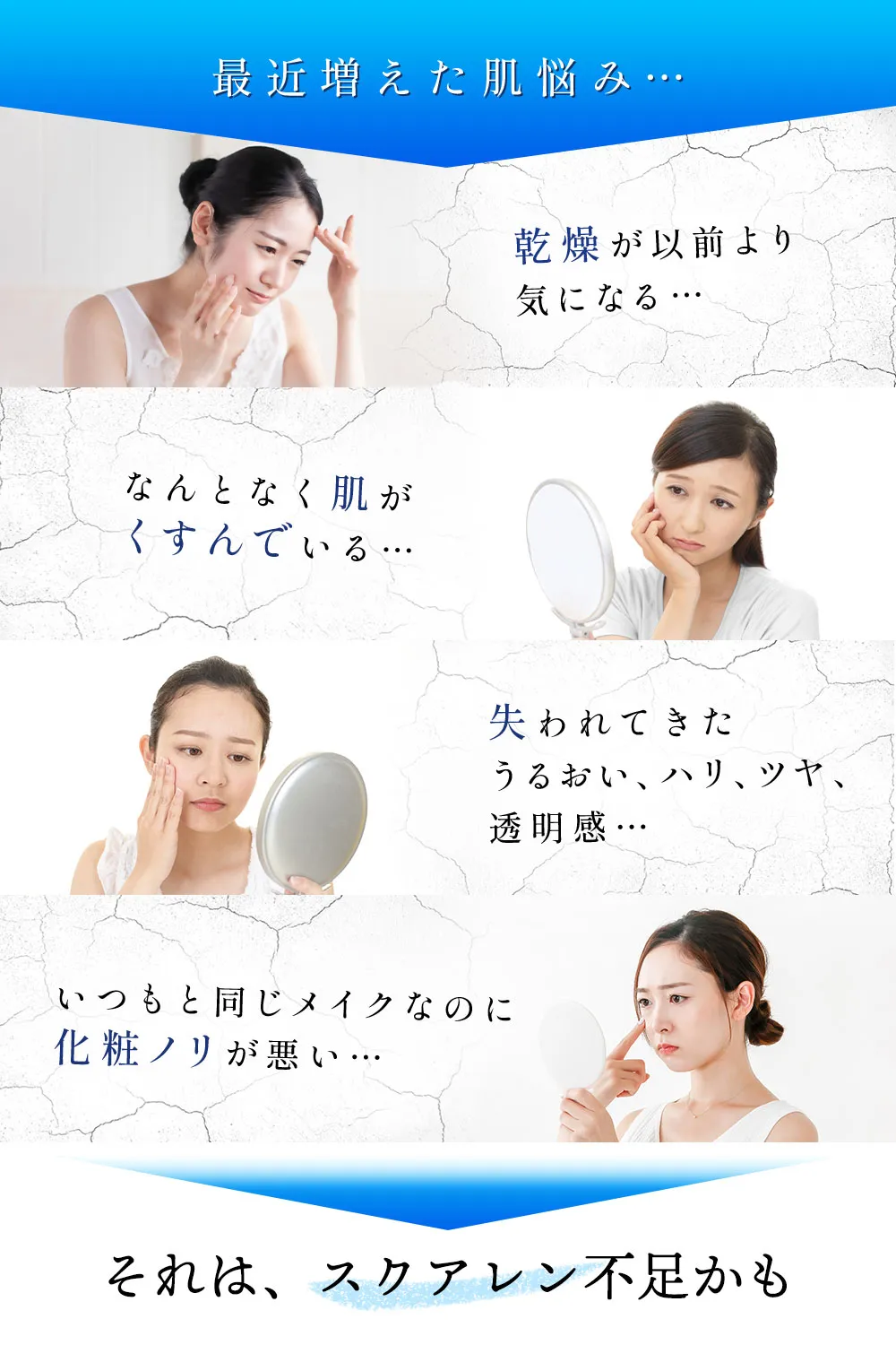 洗顔後、スクアレンオイル・スクアレンジェル・スクアレンクリームの順で