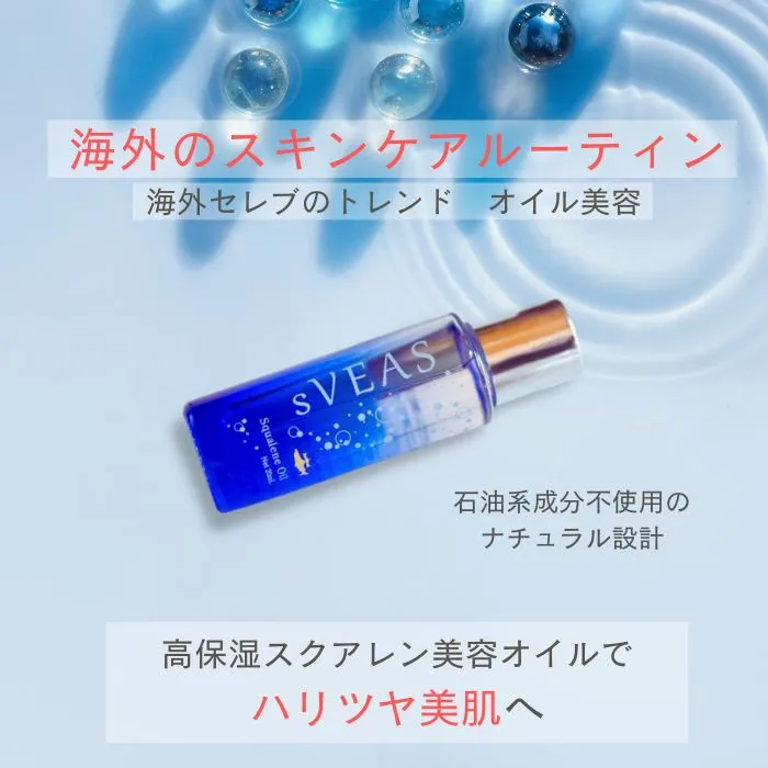 sVEAS(エスヴィアス)美容オイルは、石油系成分不使用で、美容成分のみを配合したトレンドの方向性にピッタリの高保湿美容オイル。